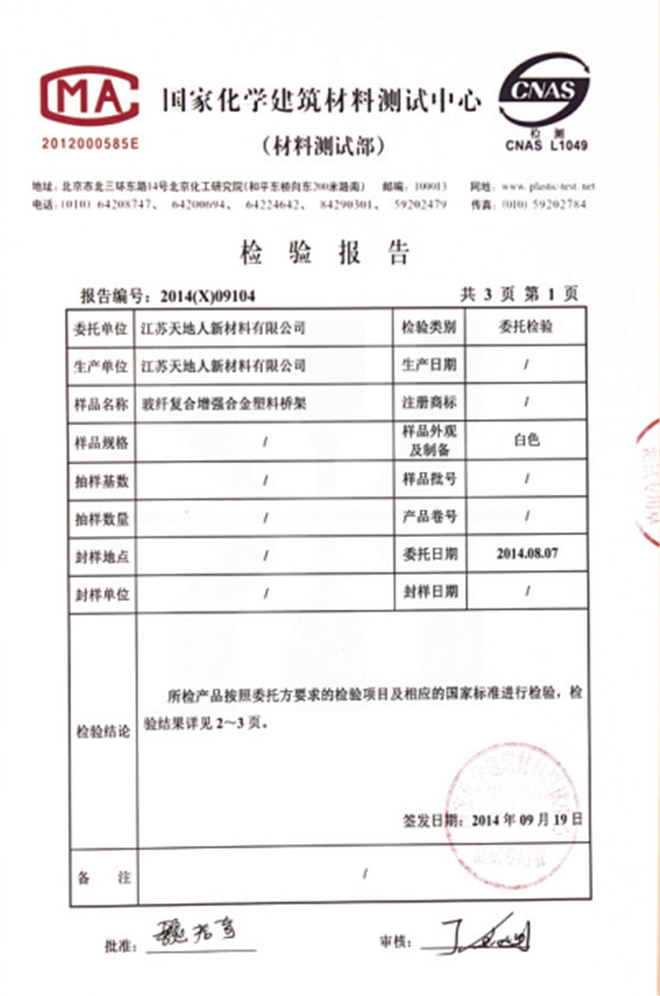 國家化學建築材料檢測中心(xīn)檢驗(yàn)報告